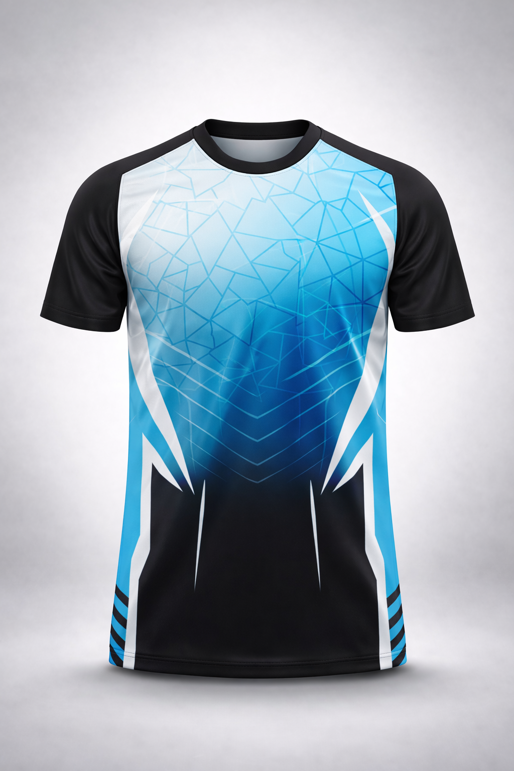 Upgrade your sportswear with this modern ice blue-black performance jersey, designed for athletes who demand both style and comfort.