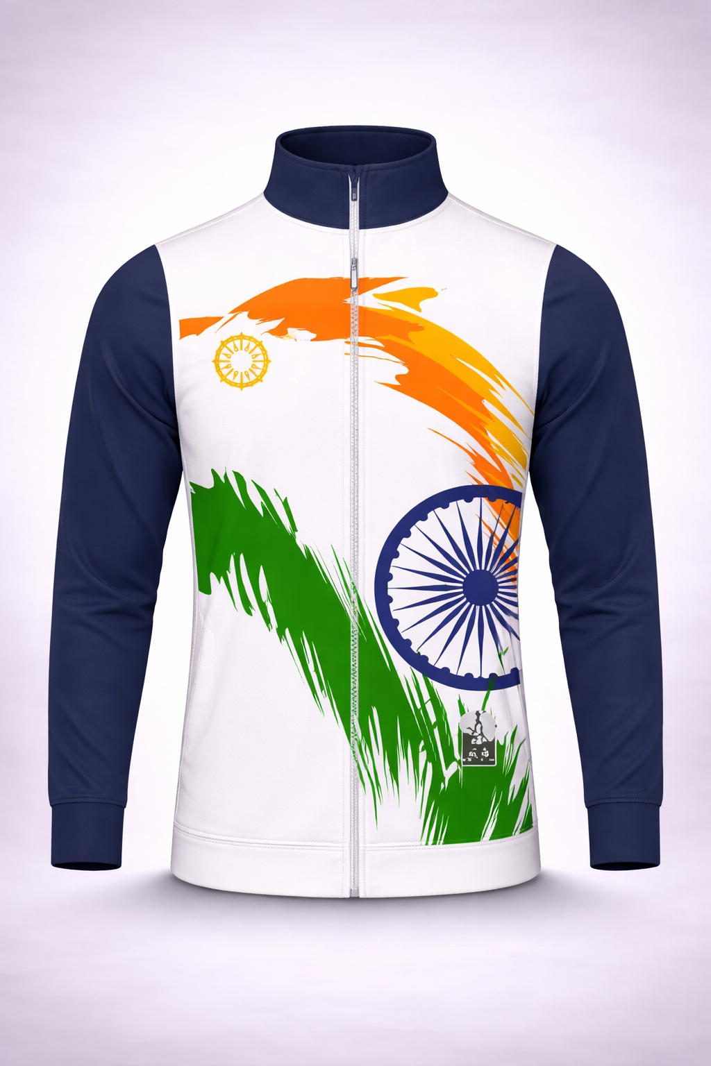 The highlight of this Indian flag jacket is its vibrant saffron, white, and green color pattern along with the Ashoka Chakra design. It gives a modern and energetic look while representing the spirit of India.