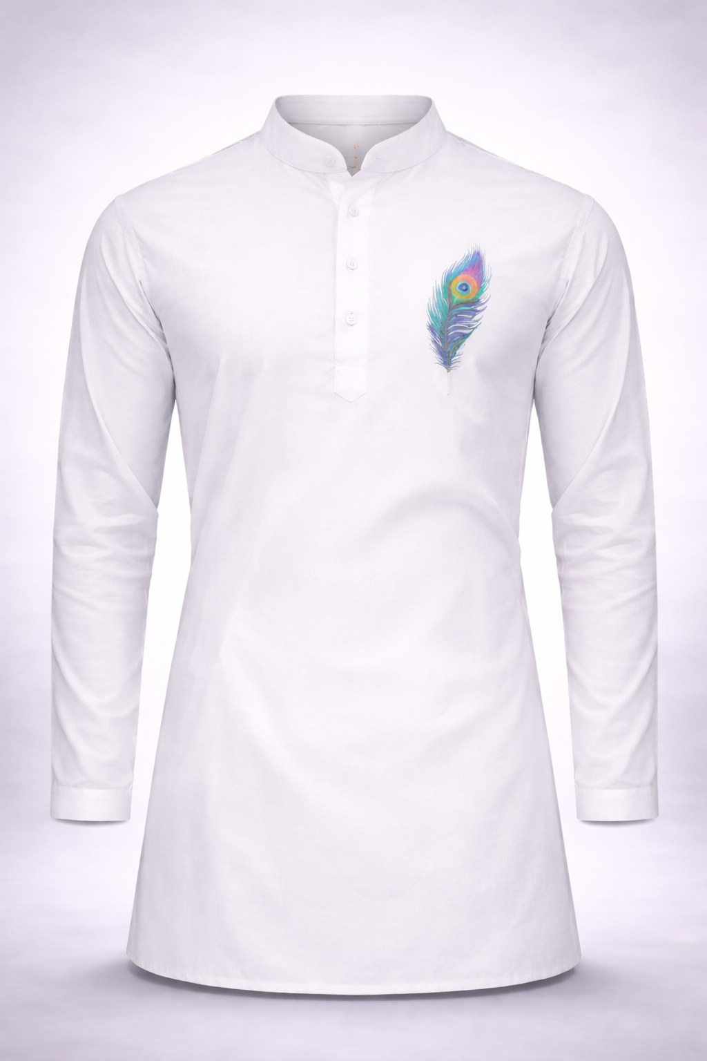 Upgrade your ethnic wardrobe with this White Kurta with Peacock Feather, designed for elegance and traditional charm. This white kurta with peacock feather design is perfect for festive occasions, cultural events, and daily ethnic wear.